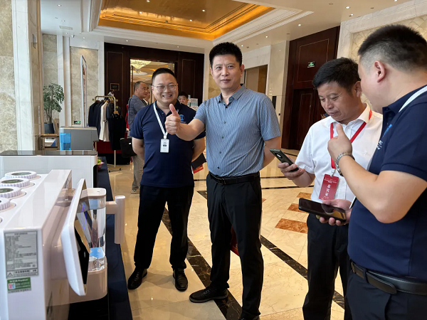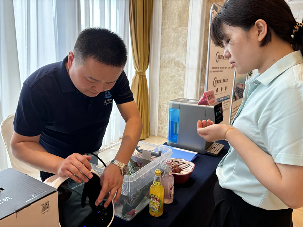 與會(huì)嘉賓紛紛駐足,親自體驗(yàn)了榮事達(dá)冷熱一體機(jī)、大通量?jī)羲畽C(jī)以及富氫水機(jī)等高科技產(chǎn)品。特別是當(dāng)大家品嘗到經(jīng)榮事達(dá)食材凈化機(jī)殺菌處理后的水果后,都紛紛表示口感絕佳,與僅用清水清洗的水果相比,更加清爽可口。