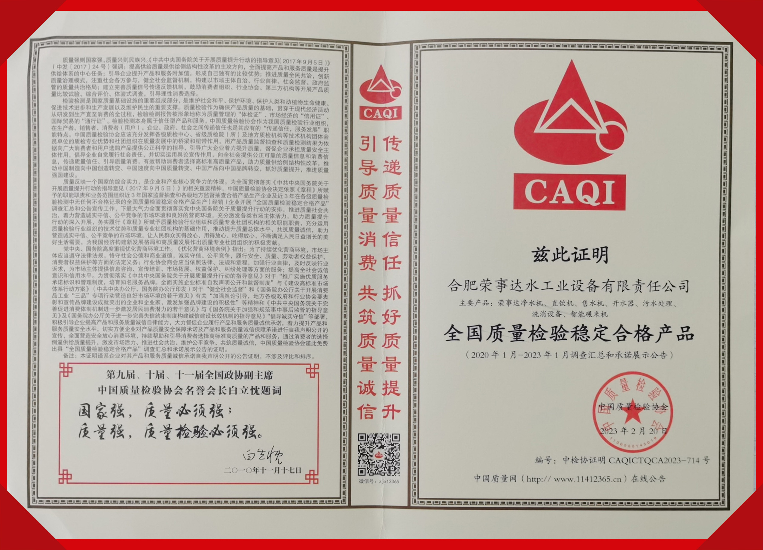 全國(guó)質(zhì)量檢驗(yàn)穩(wěn)定合格產(chǎn)品 -