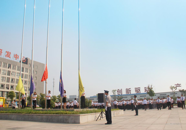 早上八點整,伴隨著一首首慷慨激昂的抗戰名曲,公司領導與各部門員工井然有序地步入中央廣場。《黃河大合唱》、《沒有共產黨就沒有新中國》、《團結就是力量》等抗戰名曲將大家帶進那個山河破碎、烽火連天的年代。七十八年前,盧溝橋的槍聲,揭開了中國人民反法西斯侵略的序幕,歷經八年的戰爭烽火,中國人民終于取得全民族抗戰勝利,那些崢嶸歲月已經遠去,而血火淬煉的抗戰精神已永遠流淌在中華兒女的血液之中。