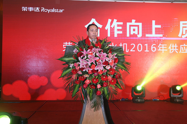 隨后,公司技術部部長江正山從技術層面出發,希望合作企業嚴把質量關,為榮事達生產優質產品提供源頭保證。生產制造中心總經理孫曉峰介紹了2015年與供應商在產品質量、生產技術等合作中取得的進步,并針對公司產品更新換代對零部件供應提出新的更高要求。孫總與在座的供應商朋友分享了榮事達的“新和商”精神,帶領大家進行了莊嚴的宣誓,共同表達了“合作向上、質贏天下”的決心和干勁。凈水家電事業部總經理王悅生闡述了2015年榮事達凈水機在終端市場的銷售盛況,希望在廣大供應商的配合下,實現優質產品和強勢營銷的完美結合,給廣大消費者提供更優質、更周到的凈水體驗。