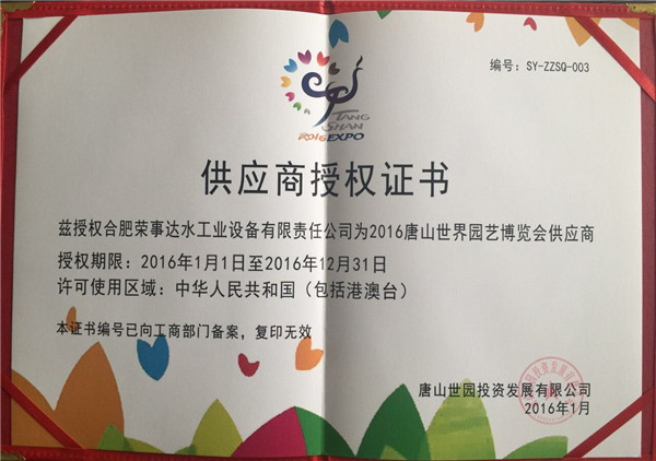 • 榮事達水工業公司成為2016唐山世界園藝博覽會直飲水供應商