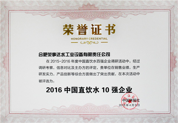 評審委員會由主辦方領(lǐng)導(dǎo)、凈水行業(yè)專家、戰(zhàn)略媒體、行業(yè)媒體、第三方調(diào)研機(jī)構(gòu)及消費(fèi)者代表組成,用國際通行方式,歷時三個多月,依據(jù)中國商報研究院發(fā)布的權(quán)威、公正,有影響力的凈水企業(yè)調(diào)研報告,綜合考慮消費(fèi)者對于品牌的認(rèn)知度、忠誠度及美譽(yù)度,評選出包括美的、3M等在內(nèi)的百強(qiáng)企業(yè),榮事達(dá)名列前茅,榮獲“中國直飲水10強(qiáng)企業(yè)”、“消費(fèi)者信賴企業(yè)”、“中國凈水行業(yè)十佳服務(wù)商”、“消費(fèi)者滿意品牌”多項(xiàng)大獎。