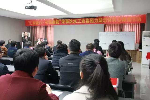 - 2017年11月18日,榮事達水工業集團舉辦了“匯聚愛心,祈愿康復”愛心募捐活動,為集團患病員工陸忠懷籌集善款。活動由黨支部牽頭倡議舉行,在榮事達智能家電研發中心三樓會議室展開。黨支部劉書記就此次捐款活動發表簡短講話,說明了陸忠懷同志的病情及其家庭的艱難處境,并代表全體員工表達了對陸忠懷同事及其家屬的慰問和關懷。隨后集團各公司、各事業部、各部門代表依次上臺捐獻善款。陸忠懷同事家屬對各位同事的傾情相助一再表示感謝。