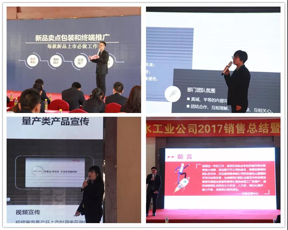 榮事達(dá)水工業(yè)公司總經(jīng)理王悅生作大會開場致辭。王總回顧了公司在2017年取得的傲人成果與輝煌業(yè)績,提出2018年戰(zhàn)略發(fā)展規(guī)劃和目標(biāo),并要求圍繞新目標(biāo),開好局,起好步,以實(shí)際行動落實(shí)新規(guī)劃,謀求新發(fā)展,創(chuàng)造新輝煌。