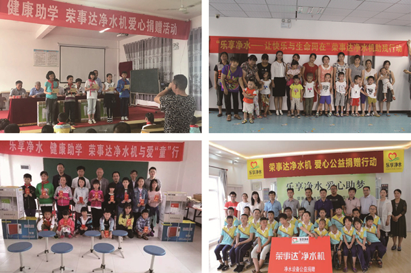 “樂享凈水.健康助學(xué)行動”由榮事達(dá)水工業(yè)公司2011年發(fā)起,向貧困地區(qū)學(xué)校免費(fèi)提供直飲水設(shè)備,援建校園直飲水工程,開展健康知識講座等志愿服務(wù),讓青少年兒童喝上健康衛(wèi)生的飲用水,同時(shí)樹立科學(xué)的飲水理念,幫助孩子茁壯成長。