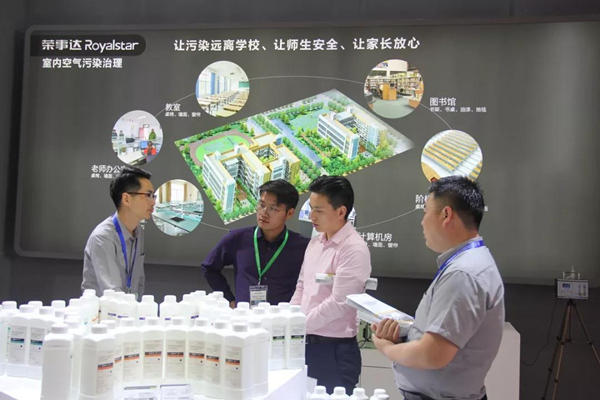 此外,榮事達智慧校園展館同時展出的“校園空氣環境治理”項目也同樣吸引許多人眼球。作為近兩年市場上的一大熱門項目,“室內空氣環境治理”廣泛應用于校園內的教室、主機房、會議室、辦公室等各個區域。其通過專業的化學藥劑與檢測設備可以充分去除空氣中甲醛、有毒雜塵等有害物質,有效地保證師生呼吸健康,市場好評不斷。新穎的產品理念與巨大的項目價值也在此次展會上吸引了來自全國多個地區的合作客戶。