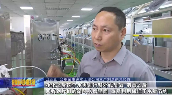 511日—517日為第二十八屆全國城市節(jié)約用水宣傳周,為引導(dǎo)廣大市民養(yǎng)成良好的節(jié)水習(xí)慣,同時(shí)推動(dòng)節(jié)水技術(shù)在企事業(yè)單位發(fā)展中的普及,合肥新聞?lì)l道開展“全國城市節(jié)約用水宣傳周”系列報(bào)道。516日晚21時(shí)30分,合肥新聞?lì)l道《晚間播報(bào)》節(jié)目播出新聞《循環(huán)利用“節(jié)水器”  助力綠色環(huán)保》,就校園直飲水節(jié)水建設(shè)和企業(yè)綠色生產(chǎn)做了專題報(bào)道,并走進(jìn)本土知名企業(yè)合肥榮事達(dá)水工業(yè)公司,見證了領(lǐng)先的凈水及節(jié)水技術(shù)。