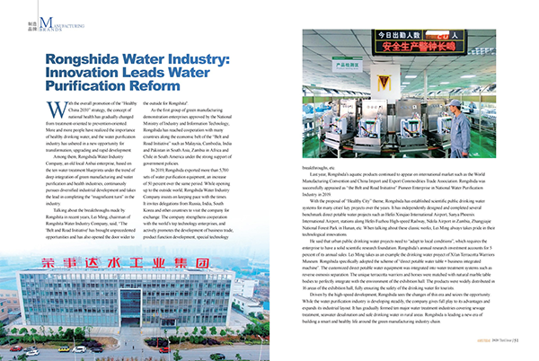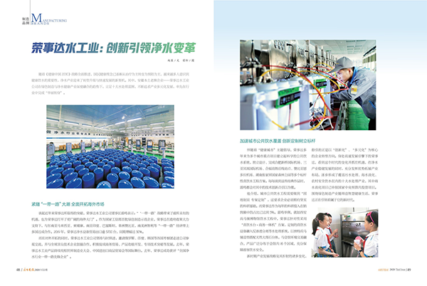 •     近日,安徽省委宣傳部官方雜志《今日安徽》2020第三期專版報道——榮事達水工業:創新引領變革,詳細介紹了綠色制造與凈水健康產業深度融合的趨勢下,榮事達創新變革,充分發揮優勢拓展產業藍圖,在“一帶一路”戰略實施、十大水處理布局等方面取得的顯著成果。