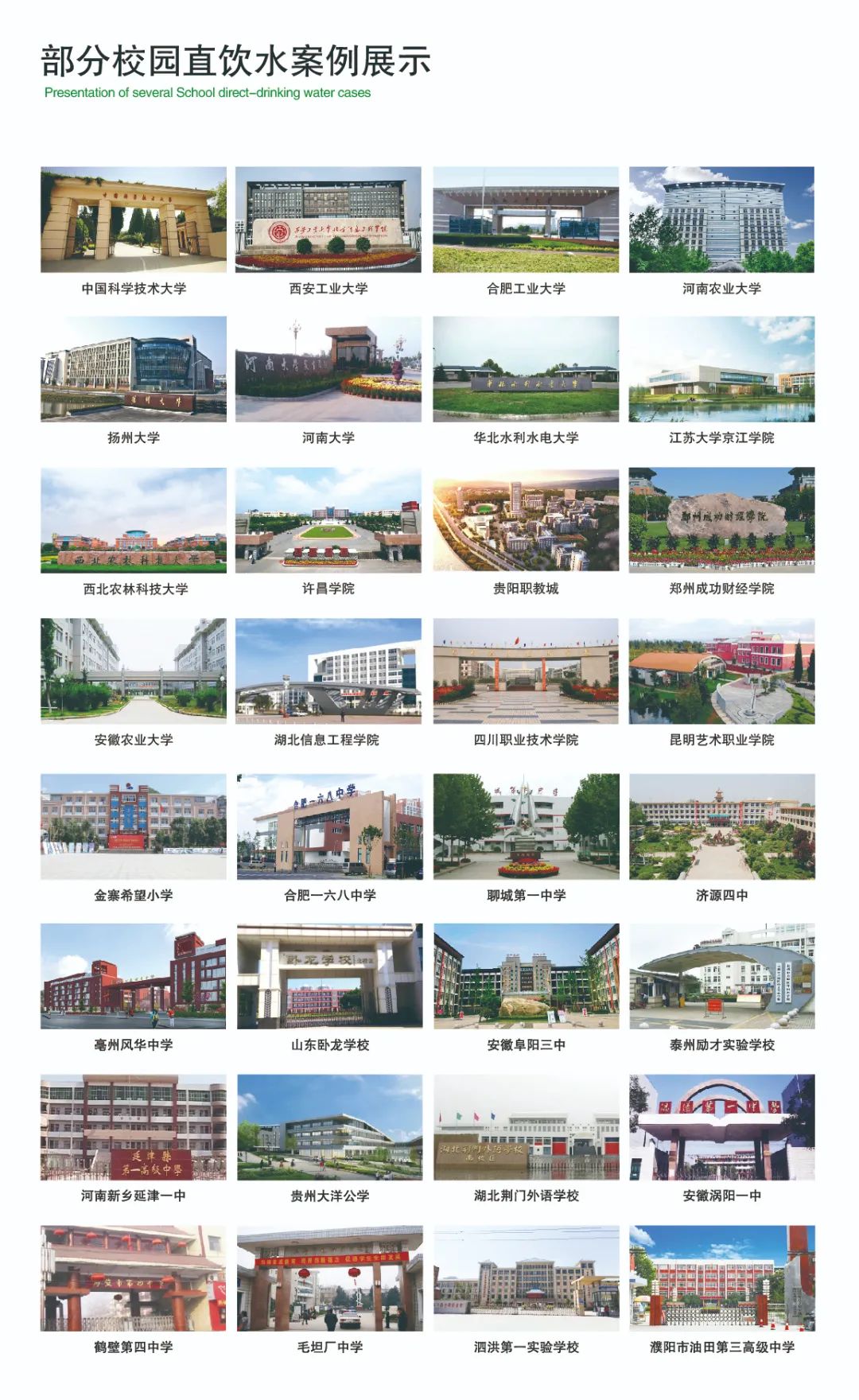 榮事達水工業先后承建了中國科學技術大學、河南大學、西北農林科技大學、江蘇省丹陽市第五中學等3000多所學校的直飲水工程,‘喝’護千萬師生飲水健康。