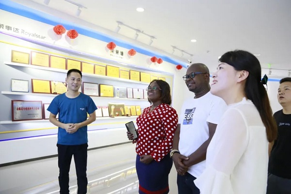 國際貿易負責人帶領客戶先后參觀了榮事達商用設備生產車間、榮事達智能家用凈水生產車間和智慧水世界展廳,了解榮事達企業綜合實力及十大水處理系統具體發展狀況。