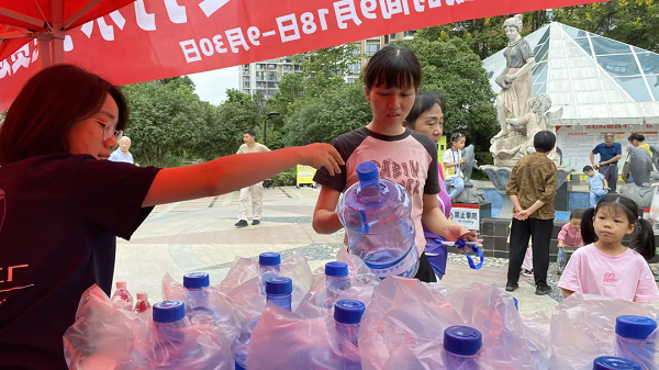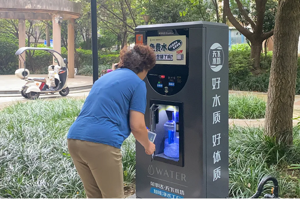 活動期間,榮事達智能凈水工廠為居民帶來了‘三免’福利,即免費送桶,免費打水,免費送水。