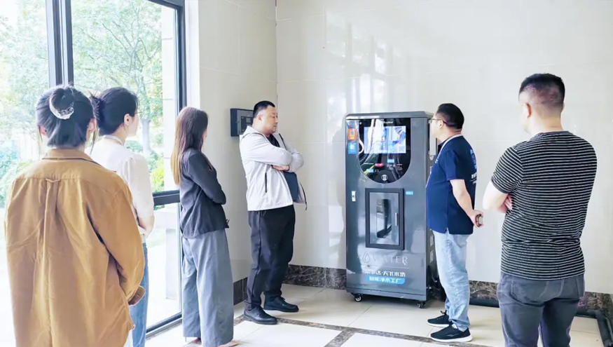 為了更直觀地感受項目的實際應用效果,客戶一行來到合肥樣板“工廠”,自榮事達社區智能凈水工廠入駐該小區以來,現制現飲的新鮮直飲水已融入居民日常生活,無論是泡茶、泡奶粉,還是煮飯煲湯,都離不開它,受到小區居民的廣泛好評。