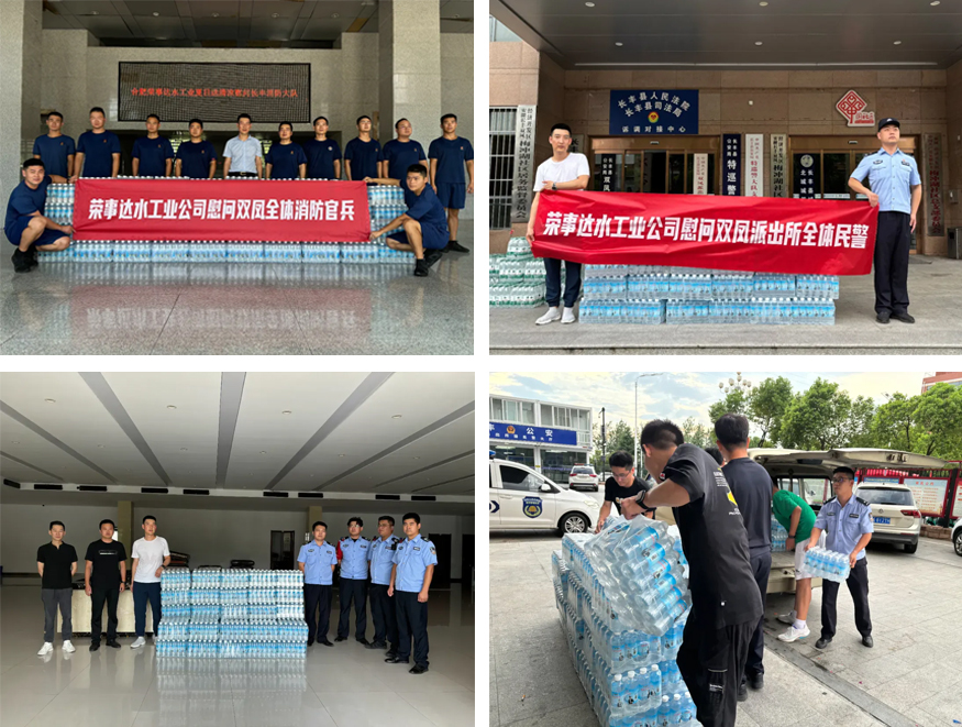 5月12日,榮事達水工業開展公益行動,集團行政總監雷鵬、黨支部書記肖曉曉來到雙鳳經開區徐橋苑消防執勤點、長豐縣消防救援大隊捐贈飲用水,致敬最美“火焰藍”,以實際行動傳遞企業的溫暖與擔當。