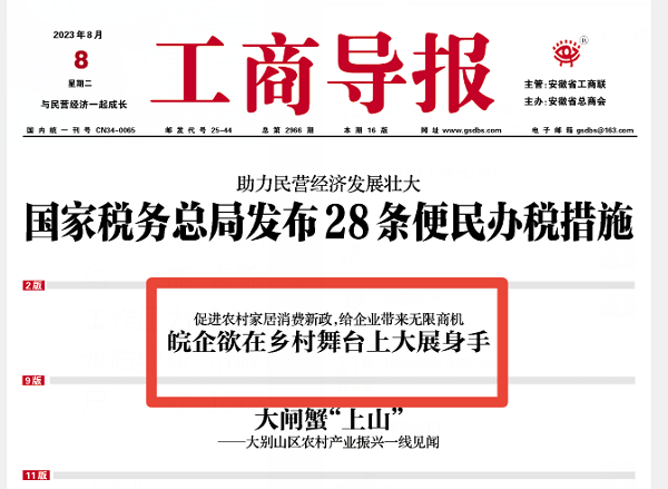 媒體聚焦|工商導報“皖企欲在鄉(xiāng)村舞臺上大展身手”