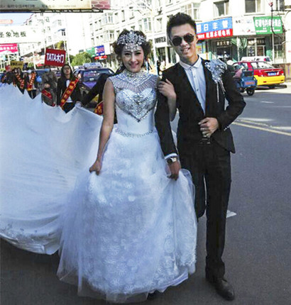 十一黃金周,國慶變“家”節,新人扎堆結婚,在這普天同慶的日子里,身著百米紗裙的新娘幸福地挽著新郎,走遍東寧縣城。榮事達與其他品牌的工作人員一起托起新娘的紗裙,致力于用自己卓越的產品品質托起新人幸福的生活,陪伴新人走向幸福之路。