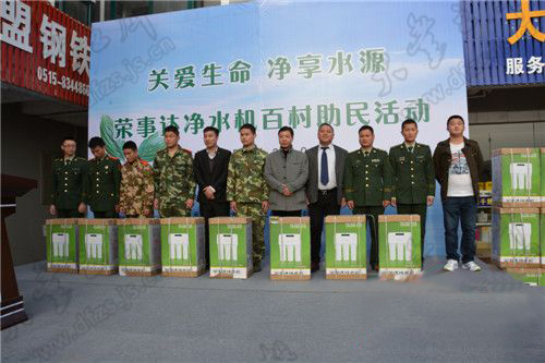 •     4月17日下午,“關愛生命 凈享水源”榮事達凈水機百村助民活動捐贈儀式順利舉行,榮事達水工業公司聯合當地經銷商向江蘇省大豐市各村鎮衛生院、工商、公安、消防等部門首批捐贈凈水機300臺。