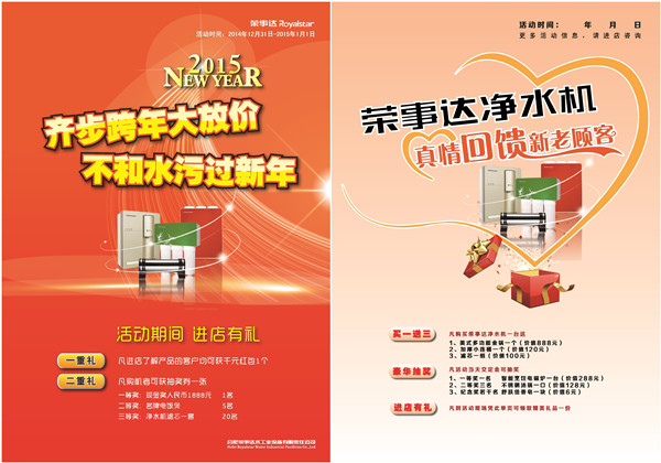 又至歲末,辭舊迎新,榮事達跨年獻禮,感恩回饋,再掀凈水狂潮。 回首2014,居民飲水安全頻頻告急,安裝家用凈水機實現“純凈水自己造”,構筑飲水安全...